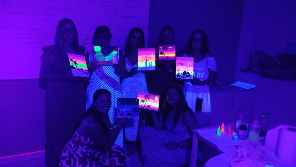 En nuestro taller de velas, aprenderás a combinar ceras naturales y esencias para iluminar tu hogar con luz propia. Si prefieres los aromas, el taller de ambientadores te permitirá diseñar fragancias personalizadas que capturen tus mejores recuerdos. Y para quienes quieren sacar su lado más artístico , nuestro exclusivo taller de «Paint in the dark», en el que pintaréis cuadros en la oscuridad, bajo la luz ultravioleta.Un plan de lo más original donde la música , el color y la fluorescencia se fusionan para crear una experiencia única .